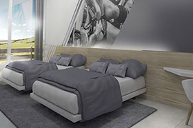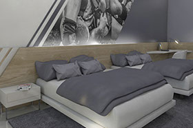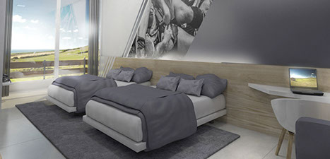 RAFA NADAL SPORT RESIDENCE pone a disposición de sus clientes modernas habitaciones caracterizadas por su novedosa decoración de carácter deportivo.